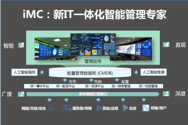 基于多年的積累和對(duì)企業(yè)IT領(lǐng)域的深入理解,新華三iMC智能管理平臺(tái)誕生之初,就以其人、資源、業(yè)務(wù)統(tǒng)一管理的理念重新定義了IT網(wǎng)絡(luò)管理概念,并不斷適應(yīng)IT技術(shù)高速發(fā)展形勢(shì),融合“云網(wǎng)端”,提供全域資源統(tǒng)一管理能力。不僅可以實(shí)現(xiàn)從應(yīng)用到芯片級(jí)端到端的管理,同時(shí)以業(yè)務(wù)為中心構(gòu)建服務(wù)模型,通過高效的配置關(guān)聯(lián)引擎,能夠?qū)崿F(xiàn)綜合業(yè)務(wù)服務(wù)分析及智能定位故障根因,并打通一體化流程平臺(tái),實(shí)現(xiàn)敏捷交付。
